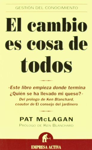 TAPA BLANDA , LIBRO USADO, RECUERDA QUE EL 10% DE ESTA VENTA COLABORA CON FUNDACIONES QUE FOMENTAN LA LECTURA EN ZONAS VULNERABLES.Todos aquellos que hayan puesto en práctica las enseñanzas de ¿Quién se ha llevado mi queso? encontrarán en El cambio es cosa de todos estrategias concretas para propiciar el cambio en las organizaciones. Este libro es una guía práctica que ayuda a las personas embarcadas en un proyecto común, independientemente de sus atribuciones, a reconocer su poder para instaurar cambios y responsabilizarse por ellos. Pat McLagan se apoya en sus treinta años de experiencia como consultora internacional de proyectos de cambio para perfilar creencias, rasgos de carácter y acciones que permiten que cualquier persona le dé la bienvenida al cambio y lo aproveche en lugar de temerlo o resistirlo. Adopta un acercamiento coloquial a un tema serio y utiliza relatos, ejemplos e ilustraciones para transmitir su mensaje: todo el mundo en una organización tiene el poder de realizar cambios que mejoren las cosas. Mediante los cuestionarios, a lo largo de la obra, los lectores pueden descubrir hasta qué punto están en condiciones de sacarle el máximo provecho al cambio. El cambio tiene lugar a nuestro alrededor, ya sea planificado o no. La manera cómo reaccionemos ante él determina el éxito personal y la autoestima y en última instancia el éxito de toda la organización. El cambio es cosa de todos pone al alcance de los lectores lo que necesitan conocer para participar de manera más consciente en la determinación de su propio destino en el trabajo y en la vida.